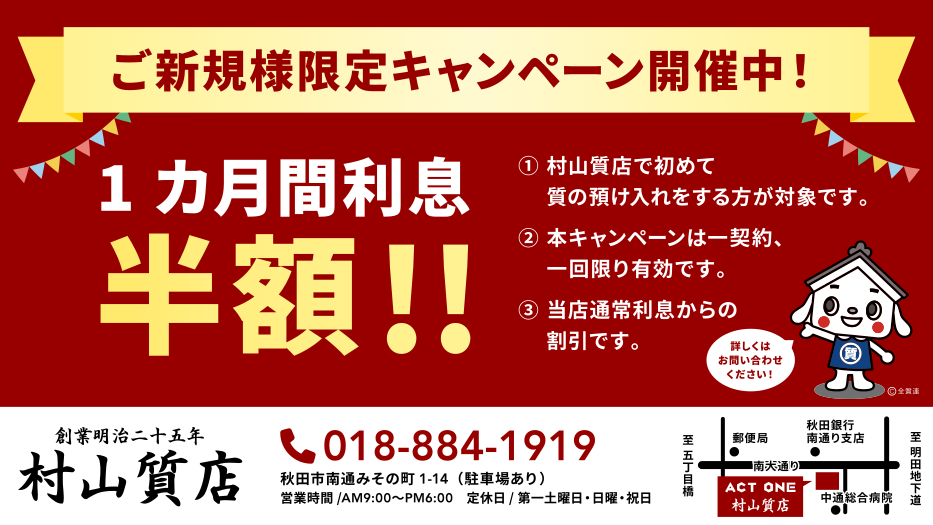この期限内に貸付額と質料(利息)をお支払いいただくとお預かりした品物をご返却致します。